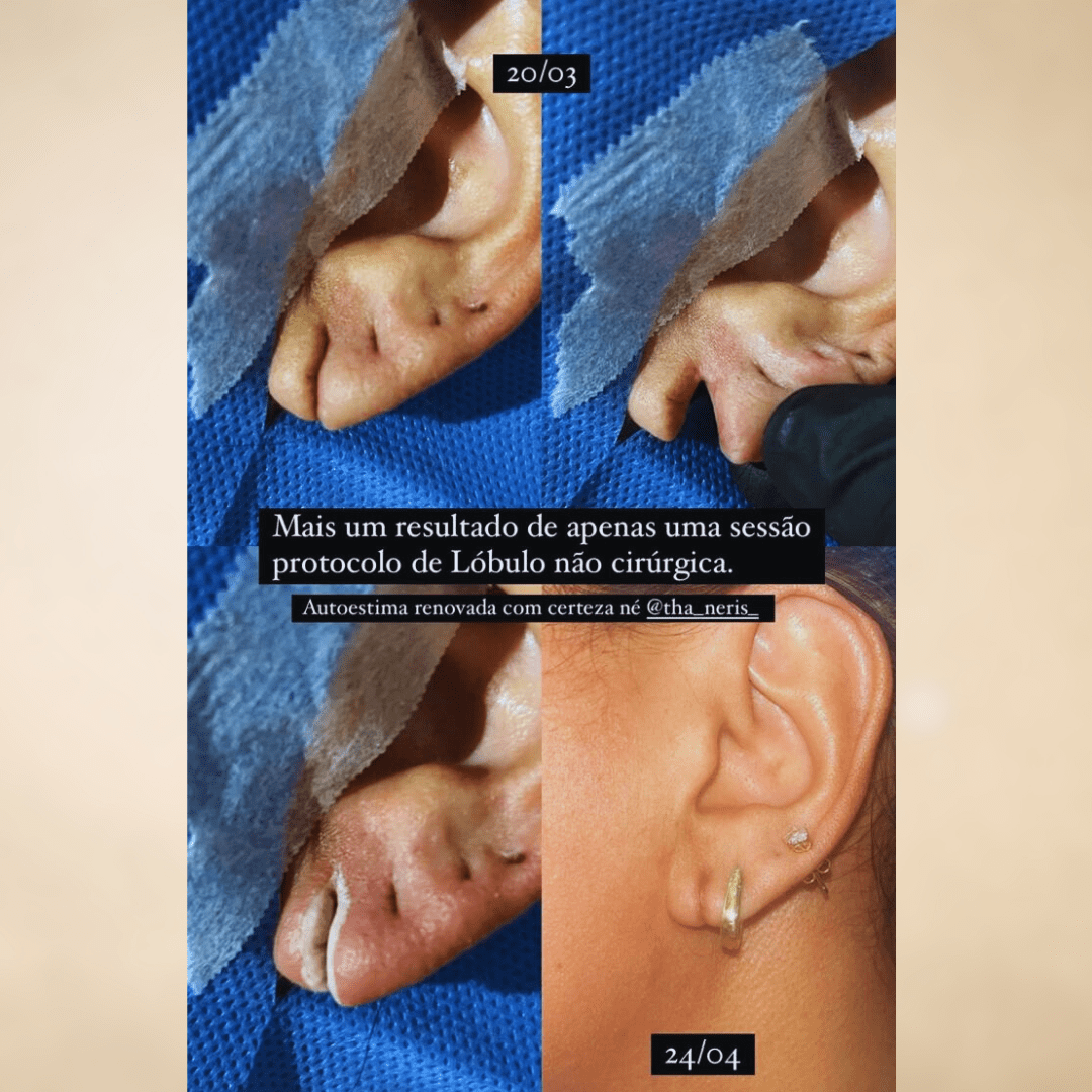 Procedimento não cirúrgico estético que corrige rasgos, alargamentos ou deformações no lóbulo da orelha, devolvendo sua forma natural e simétrica.