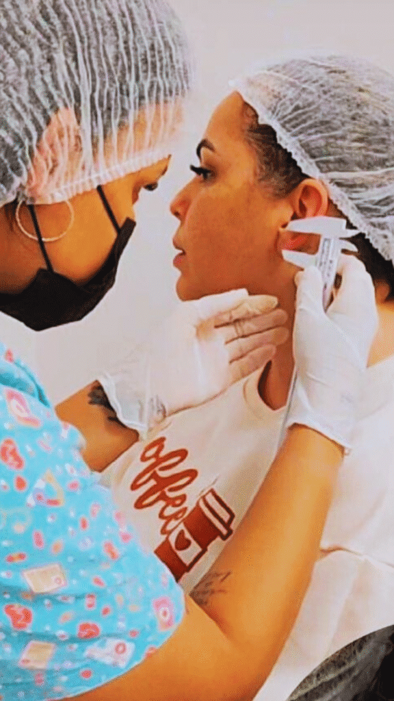 Minha experiência inclui desde o primeiro furo em bebês — com todo o carinho e segurança que esse momento exige — até procedimentos de reconstrução e correções estéticas. Utilizo técnicas modernas e materiais de alto padrão para garantir resultados eficazes e duradouros.